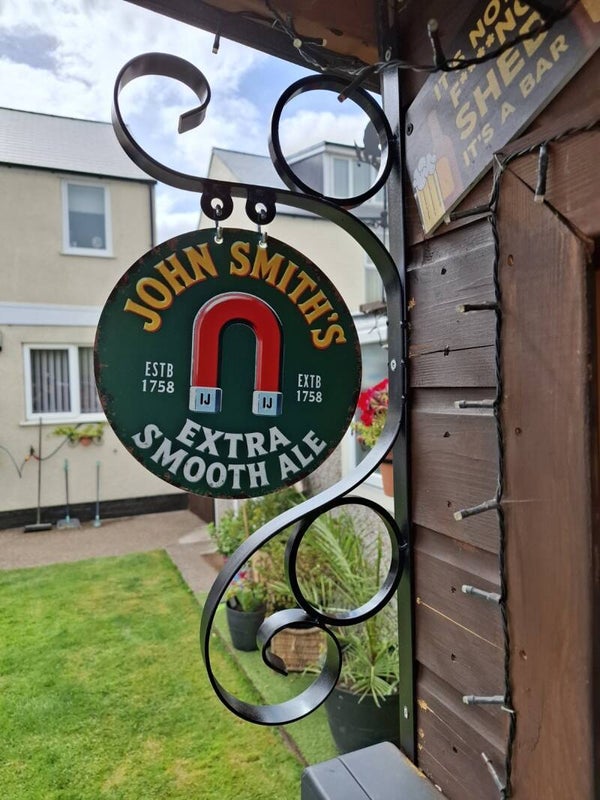 JOHN SMITHS WROUGHT IRON SIGN AND BRACKET